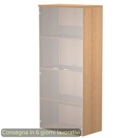 Mobile alto della linea Presto, una linea operativa contemporanea progettata per un utilizzo quotidiano ed intensivo in grado di soddisfare tutte le esigenze funzionali ed estetiche. La gamma completa degli elementi permette di allestire ogni ambiente di lavoro, personalizzandolo con stile. Scrivanie con dimensioni conformi alle normative sulla sicurezza dei posti di lavoro in ufficio. Dimensioni L. 80 x P. 35 x H. 180 cm. Top sp. 22 mm. Struttura, ante e ripiani sp. 18 mm. Tre ripiani regolabili in altezza con un sistema di bloccaggio nella posizione desiderata. Ante in vetro satinato senza serratura. Il mobile, rifinito posteriormente nello stesso colore della struttura, può essere utilizzato come parete divisoria. Dotato di piedini regolabili in altezza per un perfetto livellamento sul pavimento. Imballi in cartone riciclato alto spessore a tutela dell?ambiente. Produzione certificata conforme alle procedure UNI EN ISO 9001. Certificazioni FSC e PEFC. Struttura faggio.