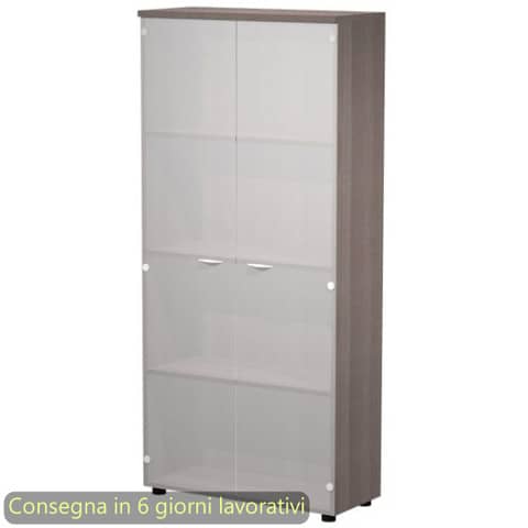Mobile alto della linea Presto, una linea operativa contemporanea progettata per un utilizzo quotidiano ed intensivo in grado di soddisfare tutte le esigenze funzionali ed estetiche. La gamma completa degli elementi permette di allestire ogni ambiente di lavoro, personalizzandolo con stile. Scrivanie con dimensioni conformi alle normative sulla sicurezza dei posti di lavoro in ufficio. Dimensioni L. 80 x P. 35 x H. 180 cm. Top sp. 22 mm. Struttura, ante e ripiani sp. 18 mm. Tre ripiani regolabili in altezza con un sistema di bloccaggio nella posizione desiderata. Ante in vetro satinato senza serratura. Il mobile, rifinito posteriormente nello stesso colore della struttura, può essere utilizzato come parete divisoria. Dotato di piedini regolabili in altezza per un perfetto livellamento sul pavimento. Imballi in cartone riciclato alto spessore a tutela dell?ambiente. Produzione certificata conforme alle procedure UNI EN ISO 9001. Certificazioni FSC e PEFC. Struttura frassino toscano.