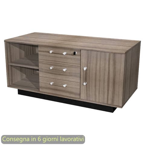 Mobile di servizio completo di due vani a giorno, con 3 cassetti e due vani chiusi con anta(anta reversibile destra o sinistra). Struttura spessore 18 mm. Colore: noce toscano. Dimensioni: 120x55xH.56,6 cm. Produzione interna Artexport della parte in legno certificata Iso 9001. Certificazioni FSC e PEFC. Imballi totalmente in cartone per un facile riciclo, a basso impatto ambientale.