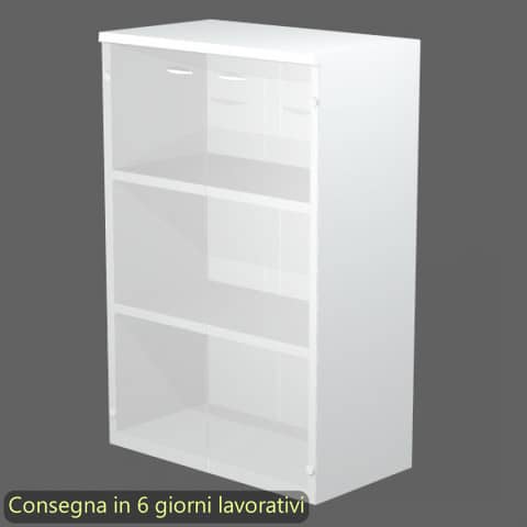 Mobile medio della linea Presto, una linea operativa contemporanea progettata per un utilizzo quotidiano ed intensivo in grado di soddisfare tutte le esigenze funzionali ed estetiche. La gamma completa degli elementi permette di allestire ogni ambiente di lavoro, personalizzandolo con stile. Scrivanie con dimensioni conformi alle normative sulla sicurezza dei posti di lavoro in ufficio. Dimensioni L. 80 x P. 35 x H. 120 cm. Top sp. 22 mm. Struttura, ante e ripiani sp. 18 mm. Due ripiani regolabili in altezza con un sistema di bloccaggio nella posizione desiderata. Ante in vetro satinato senza serratura. Il mobile, rifinito posteriormente nello stesso colore della struttura, può essere utilizzato come parete divisoria. Dotato di piedini regolabili in altezza per un perfetto livellamento sul pavimento. Imballi in cartone riciclato alto spessore a tutela dell?ambiente. Produzione certificata conforme alle procedure UNI EN ISO 9001. Certificazioni FSC e PEFC. Struttura bianca.