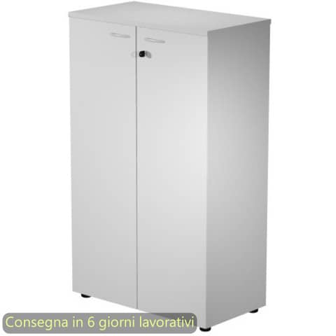 Mobile medio della linea Presto, una linea operativa contemporanea progettata per un utilizzo quotidiano ed intensivo in grado di soddisfare tutte le esigenze funzionali ed estetiche. La gamma completa degli elementi permette di allestire ogni ambiente di lavoro, personalizzandolo con stile. Scrivanie con dimensioni conformi alle normative sulla sicurezza dei posti di lavoro in ufficio. Dimensioni L. 80 x P. 44 x H. 120 cm. Top sp. 22 mm. Struttura, ante e ripiani sp. 18 mm. Due ripiani regolabili in altezza con un sistema di bloccaggio nella posizione desiderata. Ante in melaminico con una pratica serratura. Il mobile, rifinito posteriormente nello stesso colore della struttura, può essere utilizzato come parete divisoria. Dotato di piedini regolabili in altezza per un perfetto livellamento sul pavimento. Imballi in cartone riciclato alto spessore a tutela dell?ambiente. Produzione certificata conforme alle procedure UNI EN ISO 9001. Certificazioni FSC e PEFC. Struttura color grigio alluminio, ante di colore grigio.