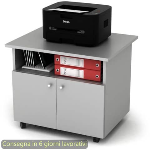 Mobile multifunzione grigio. Struttura in bilaminato melaminico spessore 18 mm classe E1. Finiture antiriflesso. Adatto come porta fotocopiatrice. Vano a giorno 59x45xH.15,7 cm. Vano chiuso con ante battenti 59x45xH.32,4 cm. Ruote pivotanti. Imballo in cartone riciclato a tutela dell'ambiente. Produzione certificata conforme procedure UNI EN ISO 9001. Dimensioni: 68x53xH.60 cm. Imballo in cartone riciclato a tutela dell'ambiente. Produzione certificata conforme procedure UNI EN ISO 9001.