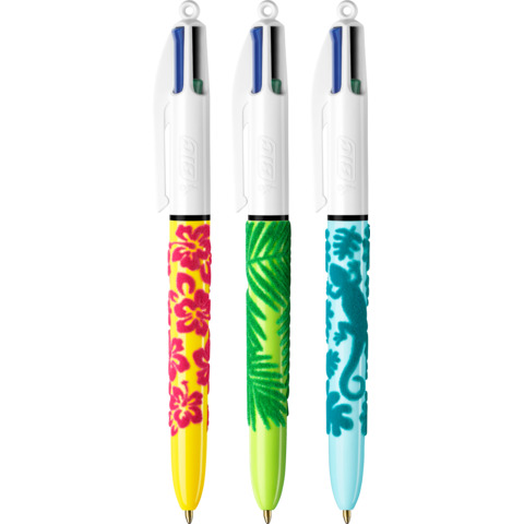 Scrivere con stile con la penna BIC 4 Colours Velours! Questa penna a sfera multifunzione offre 4 colori classici (rosso, verde, blu, nero) e una punta media da 1 mm per una scrittura pulita e precisa. Il fusto, con una morbida decorazione in velluto, è disponibile in 3 diverse fantasie: foglie, fiori o geco. In confezione da 12 fantasie assortite.