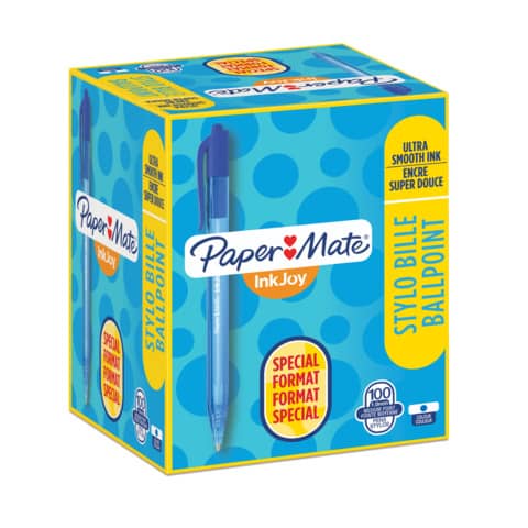 Penna a sfera a scatto Paper Mate Inkjoy 100 RT ULV M 1 mm blu Special Pack 80+20 GRATIS – S0977440
