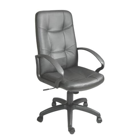 Rivestimento seduta e schienale in vera ecopelle di colore nero. Con ruote, braccioli inclusi.