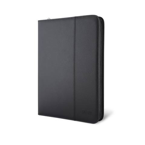 Portablocco ''Professional'' in similpelle morbido. Interno in tessuto a righe. Con cerniera e varie tasche interne. Completo di blocco. Formato 25,5x34 cm.
