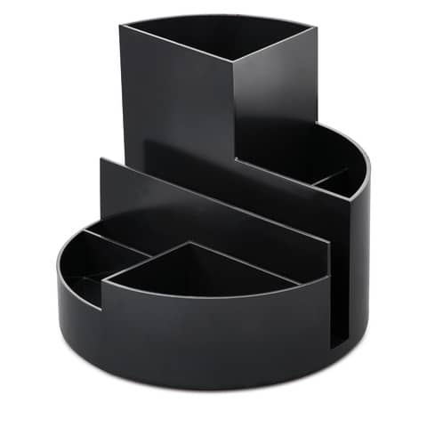 Portaoggetti MAULRoundBox realizzato In plastica riciclata al 90% (materiale post-consumo). Prodotto in modo sostenibile e socialmente accettabile. Il Portaoggetti MAULRoundBox è un vero classico, inconfondibile nel design e nella funzione, assicura l'ordine in ufficio e nel privato. 6 contenitori singoli ampi a struttura graduata, materiale di alta qualità. Ideale per la scrivania, in cucina, in officina, per accessori cosmetici. Superficie opaca. Garanzia di 3 anni. Dimensioni: Ø 14 cm, altezza 12,5 cm. Colore nero. Made in Germany.