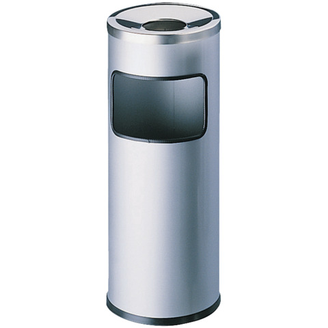 Pratico posacenere autoestinguente a colonna con cestino, realizzato in acciaio verniciato con polveri epoxy-poliestere antigraffio. Ideale per le zone fumatori in aree interne o aree esterne protette dalle intemperie. Dotato di contenitore interno che facilità lo smaltimento dei rifiuti e coperchio autoestinguente in alluminio utile per la prevenzione degli incendi. L'apertura laterale del cestino è rivestita di un bordo protettivo che evita il contatto delle mani con il metallo vivo, inoltre la base è dotata di una guaina antiscivolo e antigraffio salva-piastrella. Il rivestimento protettivo, oltre a conferire al prodotto un design raffinato e di qualità, ne assicura un utilizzo secondo gli standard di sicurezza. Include un sacchetto di sabbia da 1,5 kg. Capacità posacenere 2 lt - Capacità cestino 17 lt. Dimensioni posacenere (H x Ø): 60 x 240 mm. Dimensioni apertura laterale (HxL): 125 x 150 mm. Dimensioni contenitore interno (H x Ø): 380 x 220 mm. Dimensioni (H x Ø): 630 x 250 mm.