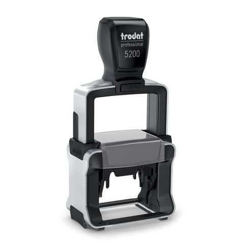 Timbro personalizzato TRODAT PROFESSIONAL 5200 4.0 - 41 x 24 mm - max 6 righe. Personalizzazione dell?impronta disponibile nei colori NERO, BLU, VERDE, ROSSO. Solida struttura in acciaio inossidabile. Impugnatura ergonomica per uso professionale. Massima qualità delle impronte. Inchiostro indelebile in conformità alla norma DIN ISO 14145-2. Modello cartuccia di ricambio Trodat 6/50. Sostituzione della cartuccia più semplice e pulita. Semplice posizionamento dell'impronta. Prodotto eco sostenibile.
