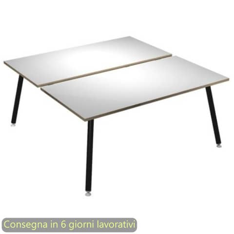 Scrivania bench doppia piano bianco 140x166xH.74,4 cm gamba metallo tubolare nero opaco Skinny Metal 6402B-DJA-3C-AQ