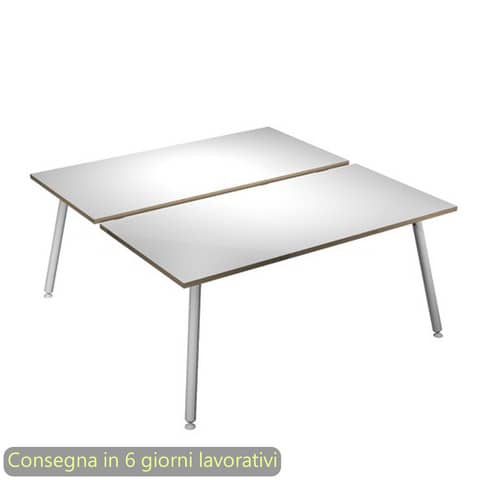 Scrivania bench doppia piano bianco 180x166xH.74,4 cm gamba metallo tubolare bianca Skinny Metal – 6405B-DJA-3C-AN