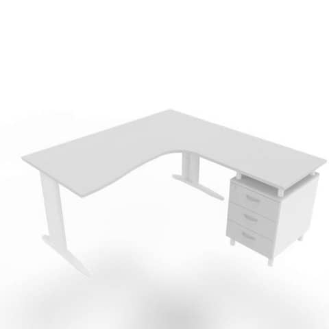 Scrivania con cassettiera a destra piano grigio 160x165xH.75 cm gamba a L acciaio bianco linea Practika P1 ECSMT17D-GR-I