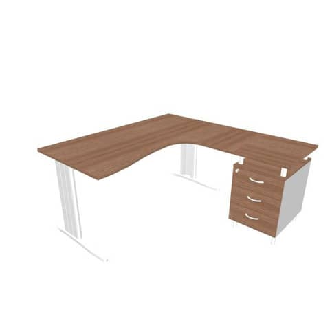 Scrivania con cassettiera sinistra piano noce canaletto 160x165xH.75 cm gamba a L acciaio argento PractikaP1 ECSMT17S-NO-A