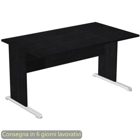 Scrivania nero venato frassino 140x80x72 gamba a pannello in tinta con piede metallico linea Presto Artexport 002L/8