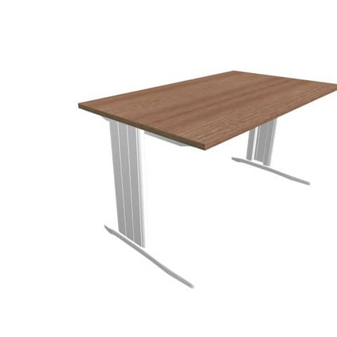Scrivania piano noce canaletto 140x80xH.75 cm gamba a L in acciaio argento linea Practika P1 ECSMT140-NO-A