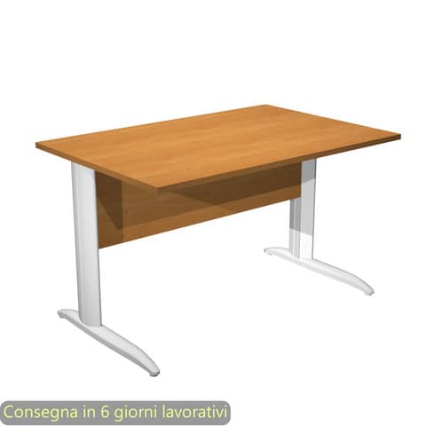 Scrivanie con dimensioni conformi alle normative sulla sicurezza dei posti di lavoro in ufficio. Piano: noce chiaro. Fianchi: bianco opaco mat. Piani antigraffio ed antiriflesso spessore 22 mm in bilaminato nobilitato melaminico spessore 22 mm e modesty panel strutturale sp. 18 mm conformi alle norme UNI e EN classe E1. Bordi dei piani in ABS 3 mm antiurto ed assenza di spigoli vivi. Gambe ad ?L? in metallo verniciato complete di piedini regolabili in altezza e canalina passacavi. Imballi in cartone riciclato alto spessore a tutela dell?ambiente. Produzione certificata conforme alle procedure UNI EN ISO 9001. Dimensioni: 120x80xH.72 cm.