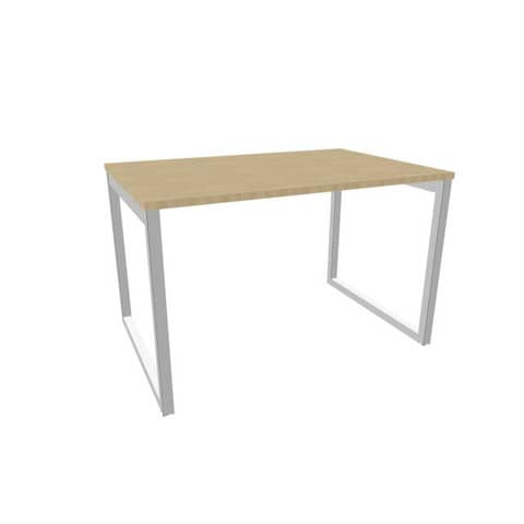 Scrivania piano rovere 120x80xH.75 cm gamba ad anello in acciaio argento linea Practika P2 Quadrifoglio – ECSAT120-RK-A