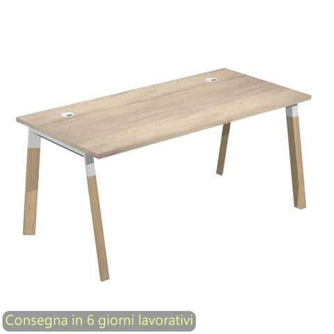 Scrivania rovere canadese 180x80xH.72,5 cm gamba inclinata legno-metallo bianco Artexport piano rovere canadese –