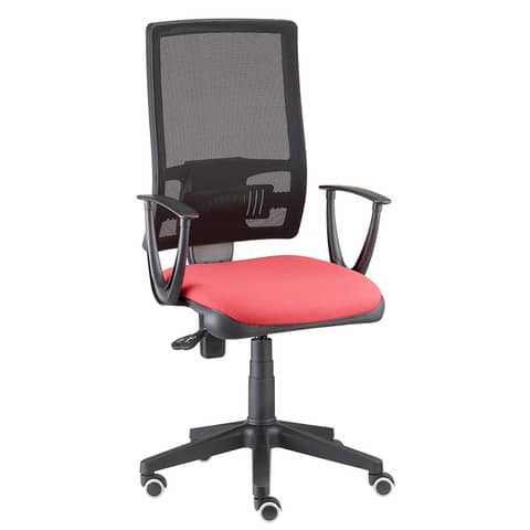 Sedia operativa girevole Unisit Nereide NDA schienale in rete – rivestimento Eco rosso – con braccioli – NDA/BRTM/ER