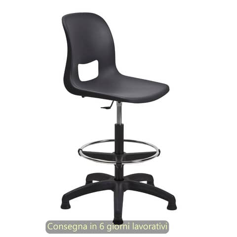 Sgabello tecnico Vera 60 con scocca in PP nero Seditaly alto con poggiapiedi regolabile – VRD0F5Q60PP01