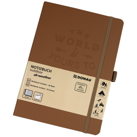 Taccuino con copertina impermeabile Donau Outdoor A5 – 56 ff 120 g/m² quadretti – marrone – 330370022