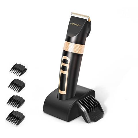Taglia facilmente i capelli, adatto a tutta la famiglia. Facile da usare, adatto sia per adulti che per bambini. Adatto alle esigenze di tutta la famiglia, per un taglio più sicuro e confortevole. La lama mobile in ceramica e la lama fissa in acciaio inossidabile sono affilate e resistenti all'usura, per tagliare i capelli facilmente e senza intoppi. Motore da 3,0 V.; Batteria a litio 2000mAh; Trim per messa a punto 5 velocità; Dotato di pettini guida; 3 impostazioni di controllo della velocità; Dotato di tutti gli accessori. Potenza 8W; dimensioni L182*W48*H45 mm.