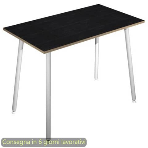 Tavolo alto della linea K67 Skinny Metal, una linea di arredo operativa dal design innovativo e dinamico, caratterizzata da gambe in metallo cilindriche inclinate. L'ideale per l?arredo di punti ristoro e per l?allestimento di postazioni di appoggio per veloci riunioni ed incontri di lavoro. Dimensioni L. 160 x P. 80 x H. 105 cm. Materiale bilaminato nobilitato melaminico spessore 22 mm conforme alle norme UNI e EN classe E1. Robusto piano in melaminico sp. 22 mm con bordo antishock resistente agli urti in ABS 2 mm, antigraffio e antiriflesso. Gambe in metallo verniciato bianco (d. 50 mm) complete di piedini livellabili in altezza. Particolarmente stabile e robusto grazie alla struttura rafforzata da quattro travi in metallo di collegamento fra le gambe. Disponibile anche nella versione con le gambe in legno massello. Certificazioni FSC e PEFC. Colore del piano nero venato frassino con bordo rovere.