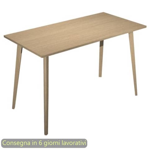 Tavolo alto della linea K143 Woody, una linea di arredo operativa dal design innovativo e dinamico, caratterizzata da gambe in legno massello cilindriche inclinate. L'ideale per l?arredo di punti ristoro e per l?allestimento di postazioni di appoggio per veloci riunioni ed incontri di lavoro. Dimensioni L. 180 x P. 80 x H. 105 cm. Materiale bilaminato nobilitato melaminico spessore 22 mm conforme alle norme UNI e EN classe E1. Robusto piano in melaminico sp. 22 mm con bordo antishock resistente agli urti in ABS 2 mm, antigraffio e antiriflesso. Gambe in legno massello (d. 50 mm) con finitura rovere, complete di piedini livellabili in altezza. Particolarmente stabile e robusto grazie alla struttura rafforzata da quattro travi in metallo nero opaco di collegamento fra le gambe. Disponibile anche nella versione con le gambe in metallo al codice 126007. Certificazioni FSC e PEFC. Colore del piano rovere.