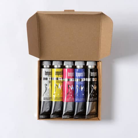 Colore a tempera fine in tubetto di alluminio da 20 ml. Grado di coprenza: semicoprente. Perfetta per le attività scolastiche. Pasta densa e corposa che rende il colore adatto anche a sfondi scuri. Alta resistenza alla luce secondo la normativa ASTM - D4303 per la tempera. Compatibili con tutti i colori e gli additivi per pittura ad acqua. Tempo di essicazione breve. Granulometria media 10 micron. Confezione da 5 colori primari assortiti.