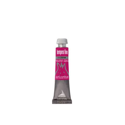 Colore a tempera fine in tubetto di alluminio da 20 ml. Grado di coprenza: semicoprente. Perfetta per le attività scolastiche. Pasta densa e corposa che rende il colore adatto anche a sfondi scuri. Alta resistenza alla luce secondo la normativa ASTM - D4303 per la tempera. Compatibili con tutti i colori e gli additivi per pittura ad acqua. Tempo di essicazione breve. Granulometria media 10 micron. Colore magenta.