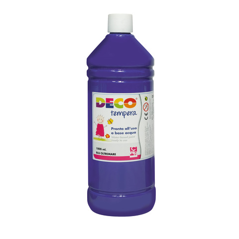 Tempera in flacone a base d?acqua. Disponibile in colori brillanti e facilmente miscelabili tra loro. La tempera è atossica e permette di ottenere un?ampia gamma di tonalità. È, anche, pronta all?uso e lavabile. Ideale per dipingere in totale libertà. Formato: 1000 ml. Colore: blu oltremare.
