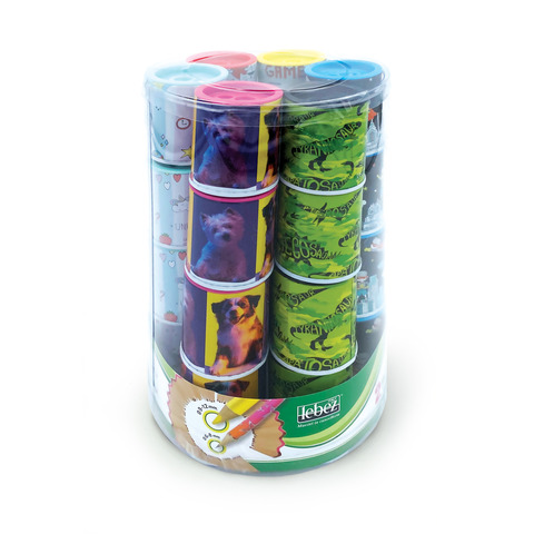 Tempera matite a 2 fori (standard e jumbo) con serbatoio in metallo verniciato. Confezione composta da 24 pezzi, colori assortiti.