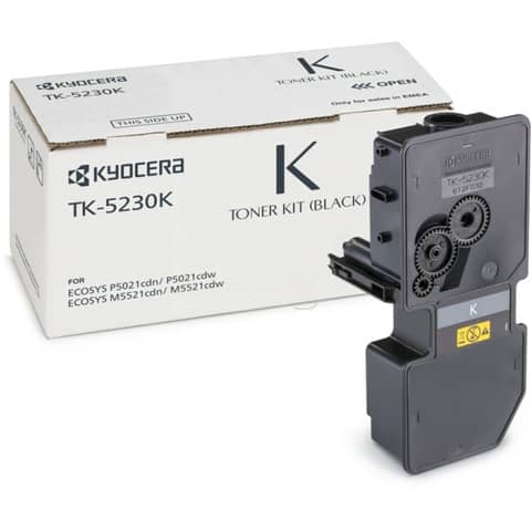 Toner TK-5230K. Resa: 2600 pagine. Colore: nero. Compatibile con i seguenti modelli: ECOSYS M5521cdn, M5521CDN/KL3, M5521cdw, M5521cdw/KL3, P5021cdn, P5021cdn/KL3, P5021cdw.
