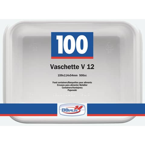 Vaschette bianche V/12 in polistirene 155x115x52 mm conf. 100 pz Dopla Professional 600 ml – 7013