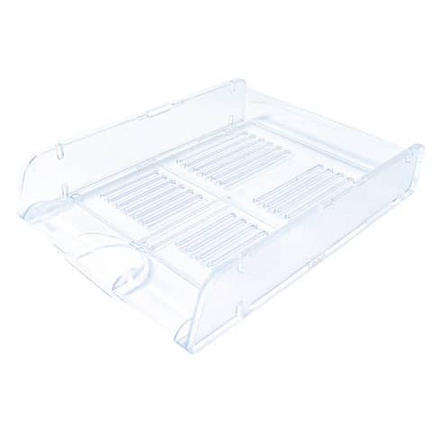 Vaschetta portacorrispondenza sovrapponibile. Resistente e robusto, supporta carichi pesanti senza deformarsi. La presa centrale agevola l'accesso ai documenti, offrendo praticità e funzionalità. Colore trasparente. Dimensioni 340 x 260 H. 60 mm.